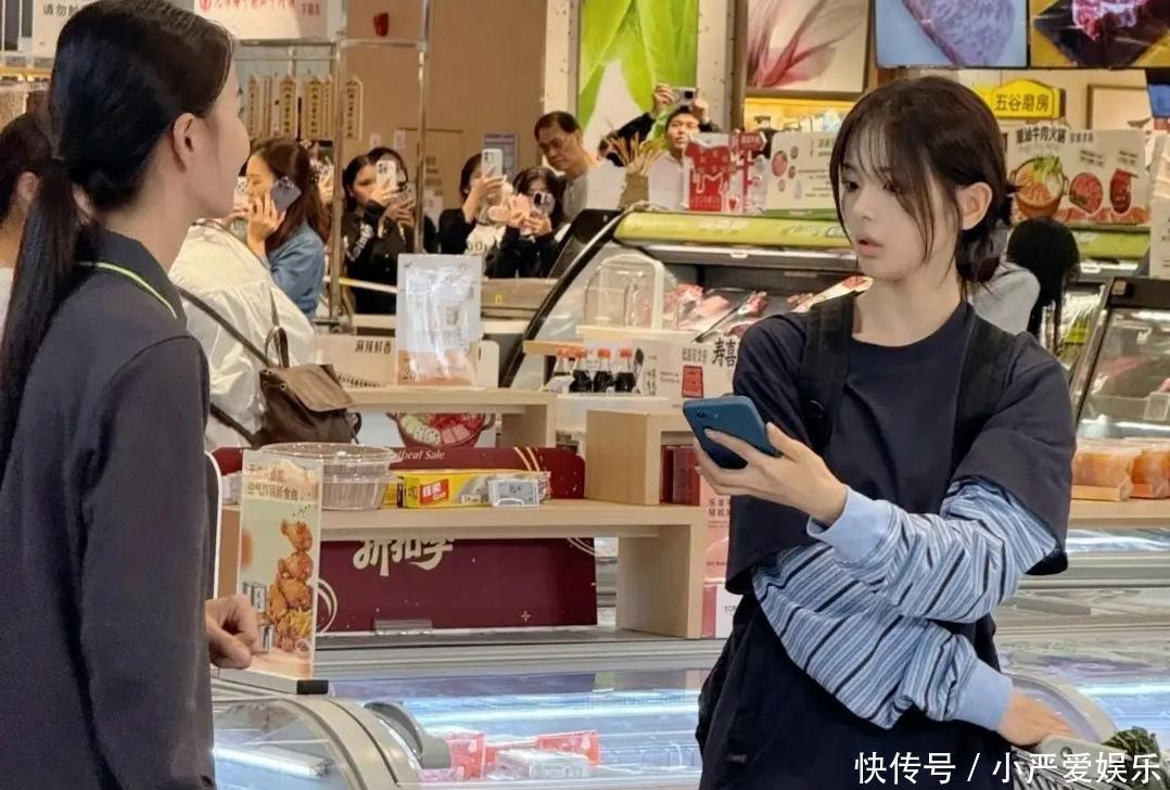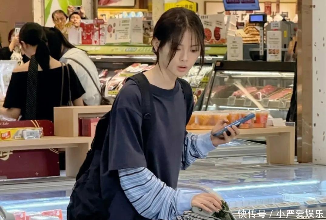 镜头下的她身材纤瘦却不干瘪,四肢匀称线条流畅,走动间尽显轻盈体态。挑选商品时,她专注地俯身查看货架,纤细的手臂和笔直的双腿在日常穿搭中更显优越,完全看不出刻意维持身材的紧绷感。偶尔抬头与身边人轻声交流,笑容清甜眉眼弯弯,毫无明星架子,那种自然松弛的状态,与超市的烟火气完美融合,让人感受到她私下里接地气的一面。